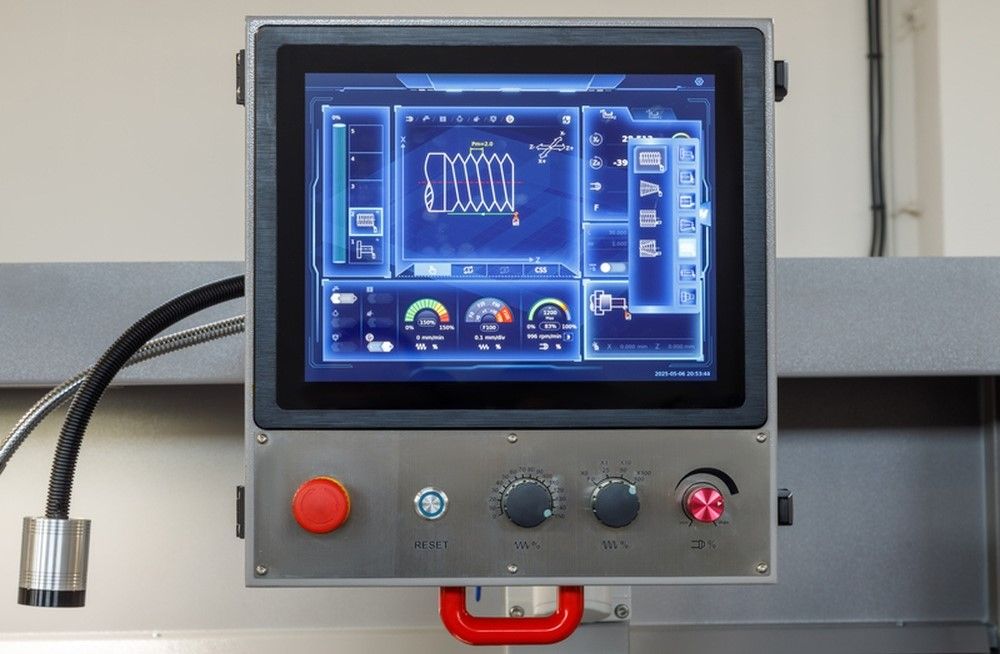 Процесс обработки легко контролировать в реальном времени. Дисплей отображает текущие скорость вращения шпинделя, величины подач, направление движения суппорта и нагрузки на привода.